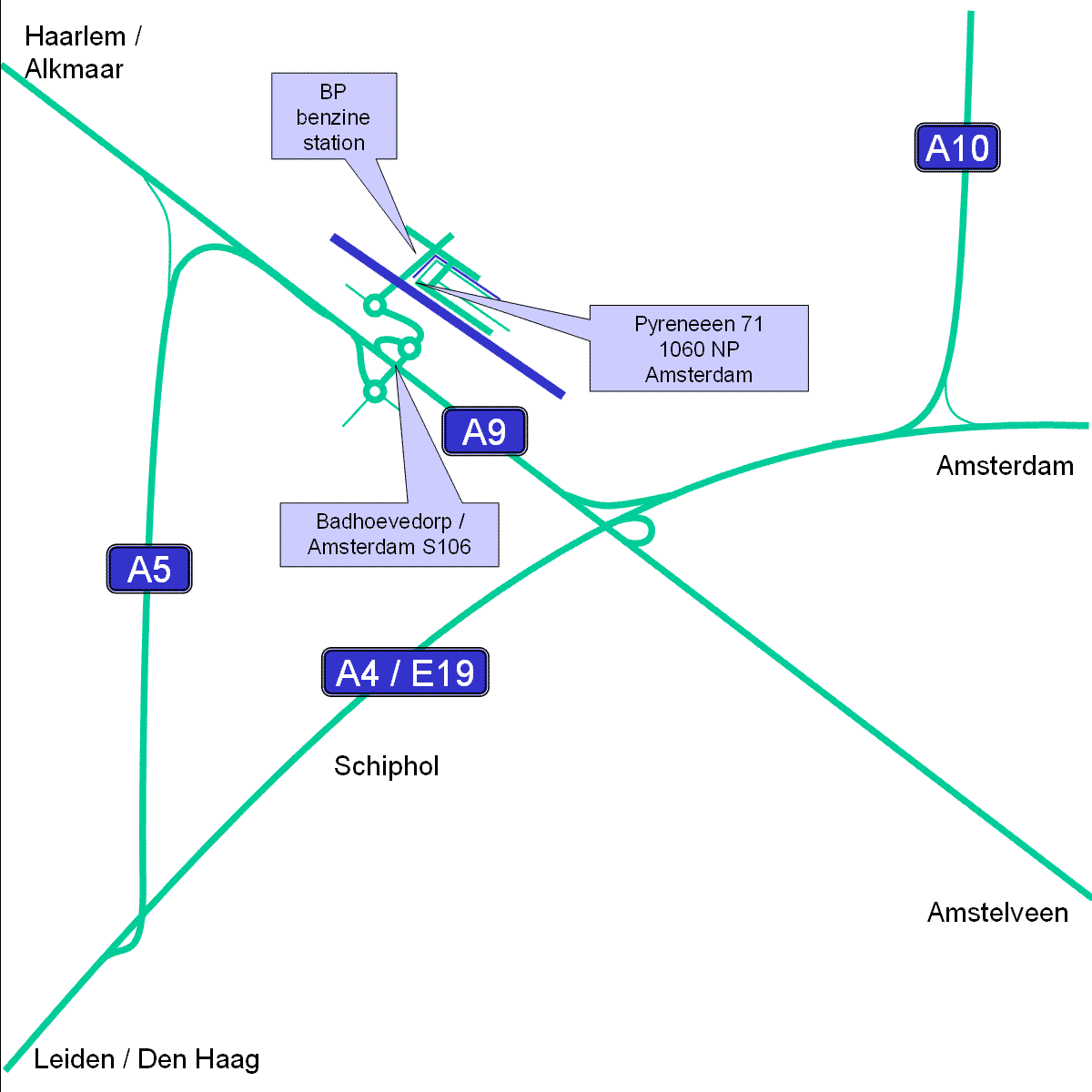 - Neem de 1e afslag: Afrit 7 richting S106 / Badhoevedorp / Lijnden / Amsterdam-Osdorp